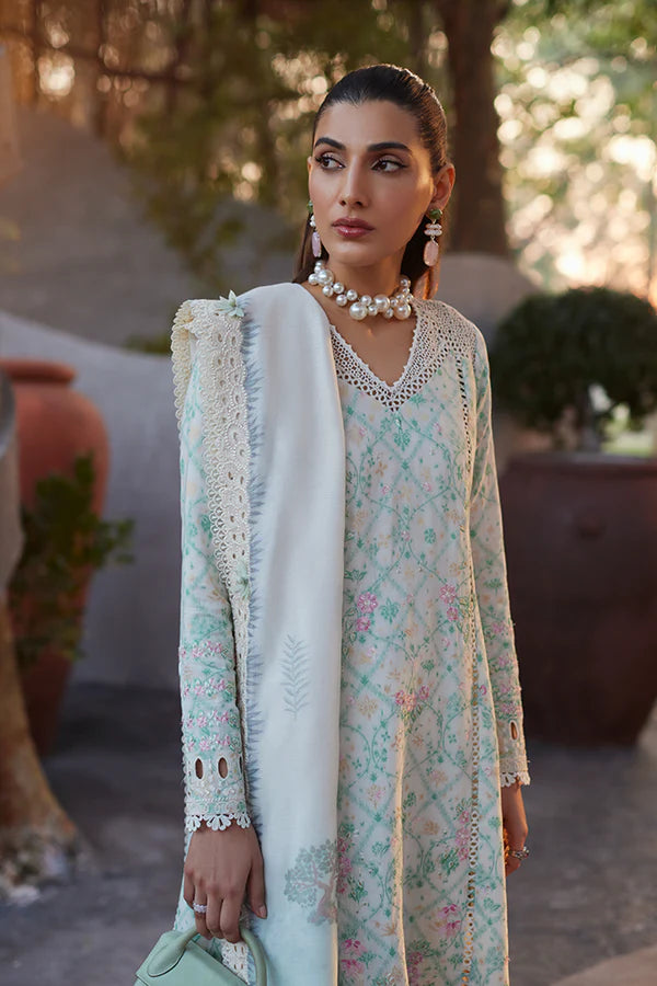 - Turquoise jacquard base kurta flair with layered detail on the neckline with lace and pops of pink on the shirt. With jaal detail falls through the shirt. Includes fitted sleeves, intricate lace detail, and cutwork for added elegance.