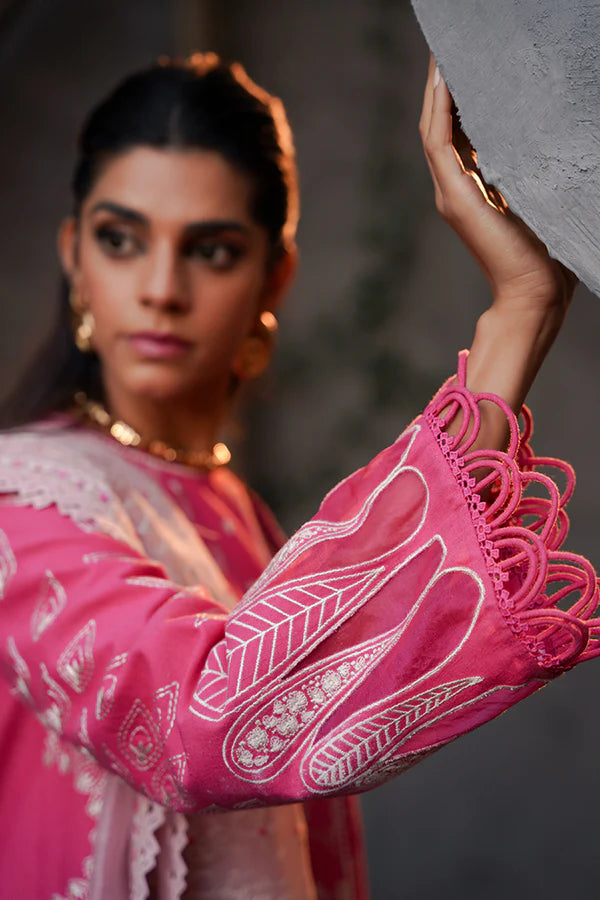- Candy Pink with front open shirt featuring a contemporary chic neckline. It also includes montone embroidery that complements the contrast.