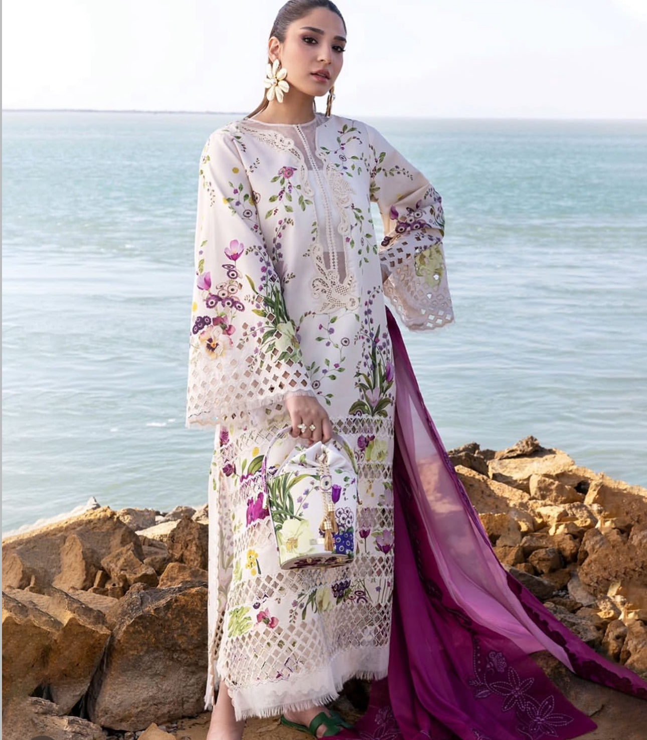 - 0.67 METERS PRINTED LAWN WITH EMBROIDERED CUTWORK FOR SLEEVES