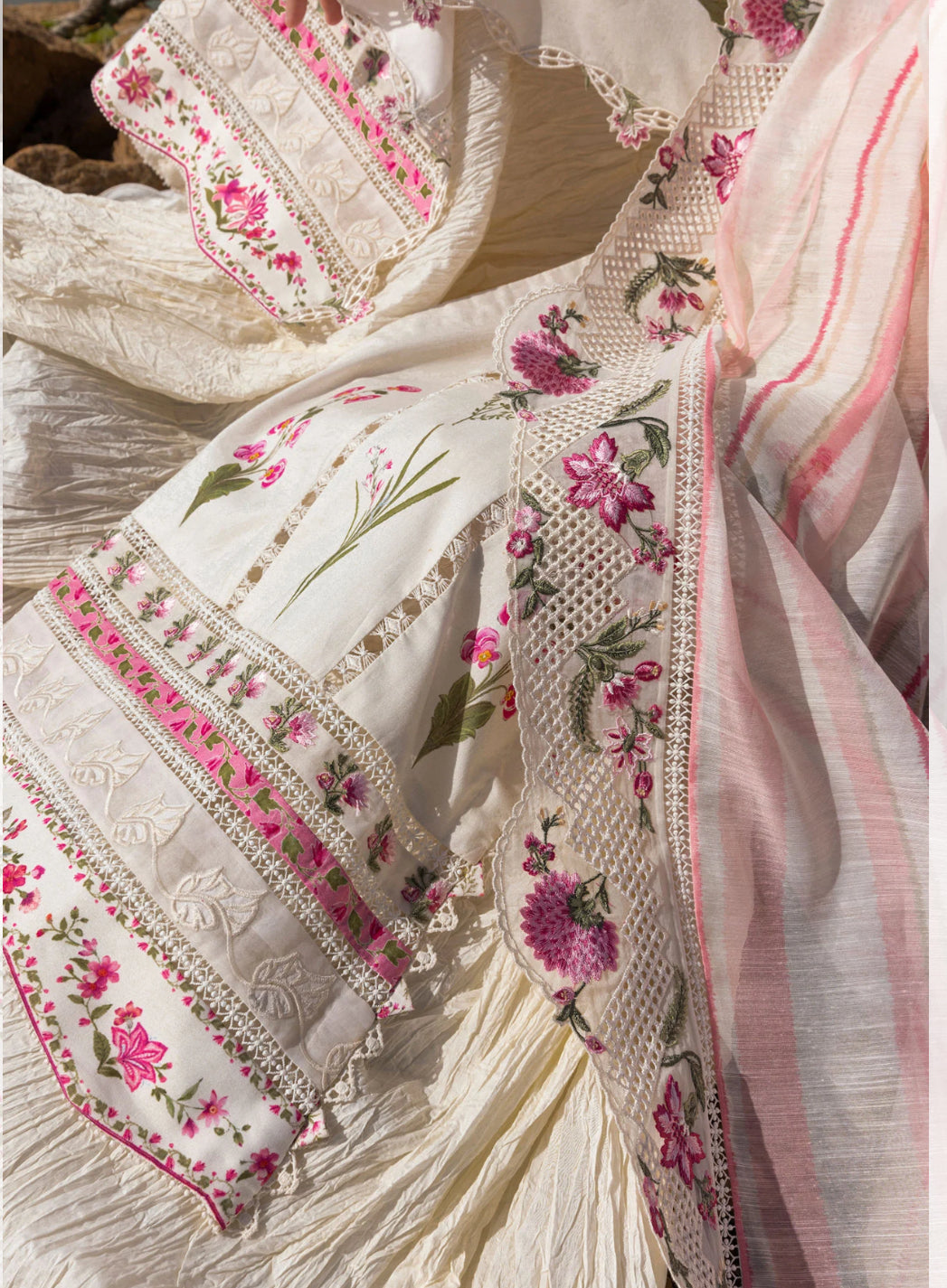 - EMBROIDERED JAAL WITH FLOWER BOOTIS FOR NECKLINE INSERT ON ORGANZA